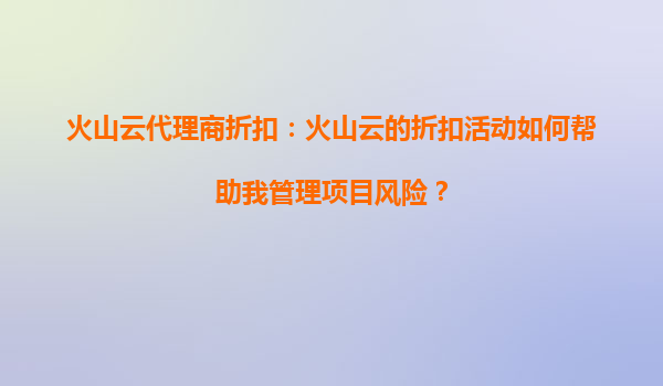 2025-09-16火山云代理商折扣:如何通過折扣活動(dòng)優(yōu)化項(xiàng)目管理風(fēng)險(xiǎn) 引言 在數(shù)字化轉(zhuǎn)型的時(shí)代,云計(jì)算服務(wù)已成為企業(yè)管理和運(yùn)營(yíng)的核心工具。然而,高額的云服務(wù)成本可能為項(xiàng)目帶來財(cái)務(wù)風(fēng)險(xiǎn)。火山云作...