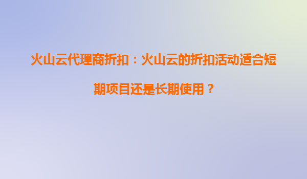 2025-09-16火山云代理商折扣:火山云的折扣活動(dòng)適合短期項(xiàng)目還是長(zhǎng)期使用? 一、火山云代理商折扣的核心優(yōu)勢(shì) 火山云作為字節(jié)跳動(dòng)旗下的云計(jì)算服務(wù)平臺(tái),憑借其強(qiáng)大的基礎(chǔ)設(shè)施和豐富的產(chǎn)品矩陣,吸引了眾多企業(yè)用...