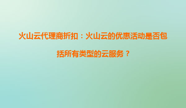 2025-09-16火山云代理商折扣:火山云的優(yōu)惠活動(dòng)是否包括所有類型的云服務(wù)? 火山云的代理商折扣政策概述 火山云作為國(guó)內(nèi)領(lǐng)先的云計(jì)算服務(wù)提供商,為吸引更多合作伙伴和客戶,推出了多樣化的代理商折扣政策。這些優(yōu)惠...