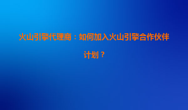 火山引擎代理商:如何加入火山引擎合作伙伴計劃?