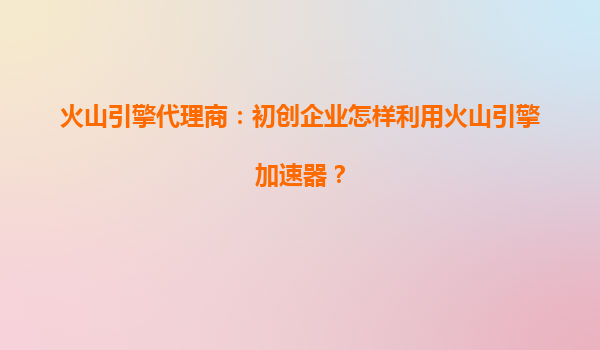 火山引擎代理商:初創(chuàng)企業(yè)怎樣利用火山引擎加速器?