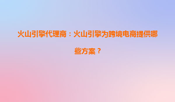 火山引擎代理商:火山引擎為跨境電商提供哪些方案?