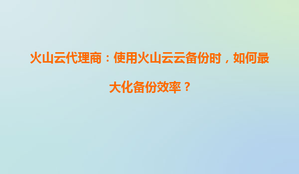 火山云代理商:使用火山云云備份時(shí),如何最大化備份效率?