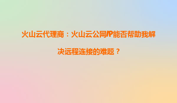 火山云代理商:火山云公網(wǎng)IP如何解決遠(yuǎn)程連接難題?