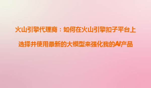 火山引擎代理商指南:如何在火山引擎扣子平臺(tái)上選擇并使用最新大模型強(qiáng)化AI產(chǎn)品