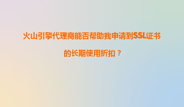 火山引擎代理商能否幫助申請SSL證書長期折扣?