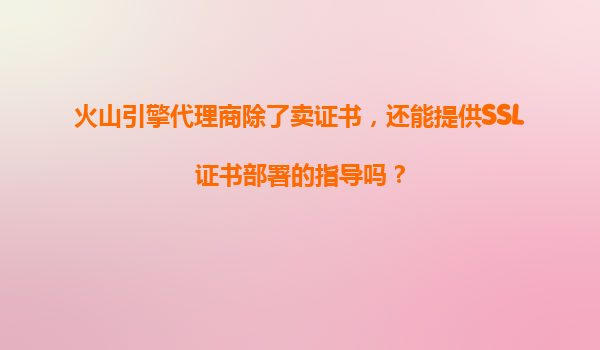 二、SSL證書部署指導(dǎo):火山引擎代理商的核心優(yōu)勢