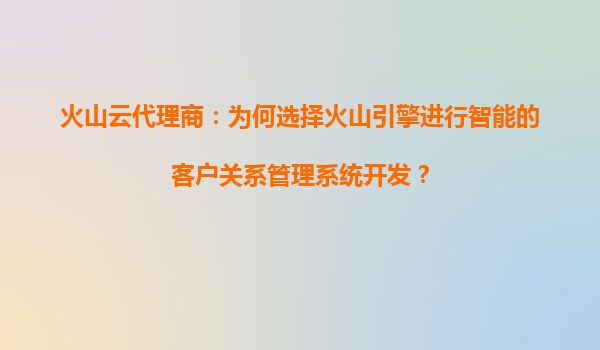 火山云代理商:為何選擇火山引擎進行智能客戶關(guān)系管理系統(tǒng)開發(fā)?