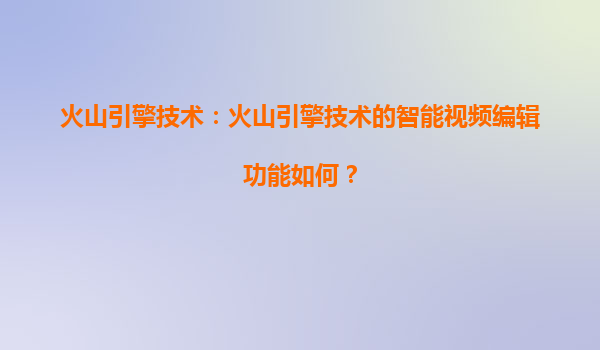 火山引擎技術(shù):智能視頻編輯功能的創(chuàng)新與應(yīng)用