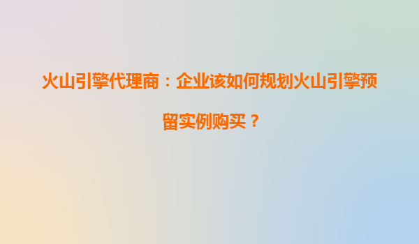 火山引擎預(yù)留實(shí)例:企業(yè)如何高效規(guī)劃資源與成本?