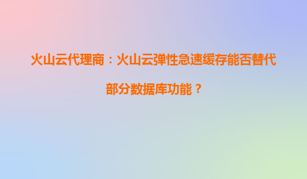 4008-020-360 火山云代理商:火山云彈性急速緩存能否替代部分數(shù)據(jù)庫功能? 引言 隨著云計算和大數(shù)據(jù)技術的快速發(fā)展,緩存技術在提升系統(tǒng)性能、降低延遲方面發(fā)揮著越來越重要的作用。火山云彈性急速緩存(Volcan...