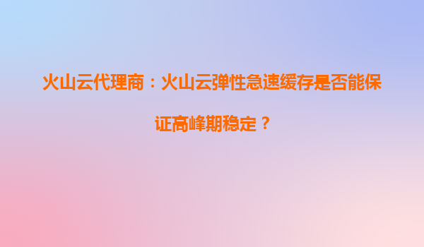 2025-09-22火山云代理商:火山云彈性急速緩存如何保障高峰期業(yè)務(wù)穩(wěn)定? 一、企業(yè)面臨的緩存挑戰(zhàn)與核心需求 在數(shù)字化業(yè)務(wù)高速發(fā)展的今天,企業(yè)面臨的流量峰值壓力與日俱增。電商大促期間瞬發(fā)訂單、在線教育直播課萬人并發(fā)、金...