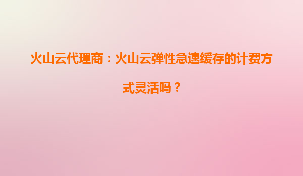 2025-09-19火山云代理商:火山云彈性急速緩存的計費方式靈活嗎? 一、火山云彈性急速緩存的計費方式有多靈活? 火山引擎作為字節(jié)跳動旗下的云計算服務(wù)品牌,其火山云彈性急速緩存服務(wù)在設(shè)計之初就充分考慮了用戶需求,提...