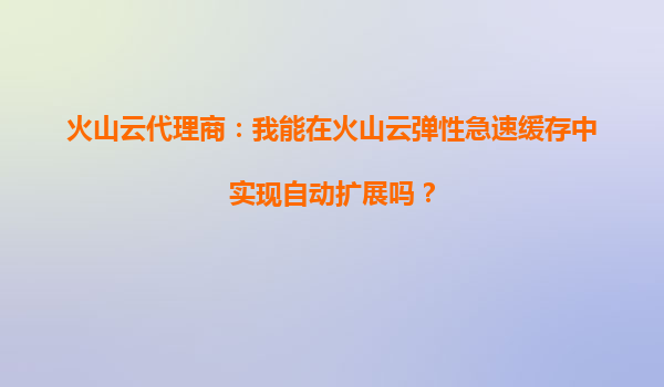 2025-09-20火山云代理商:我能在火山云彈性急速緩存中實現(xiàn)自動擴(kuò)展嗎? 為什么選擇火山云彈性急速緩存? 在數(shù)字化時代,緩存服務(wù)已成為現(xiàn)代應(yīng)用架構(gòu)中不可或缺的一部分。特別是對于高并發(fā)、低延遲要求的業(yè)務(wù)場景,如何快速擴(kuò)...