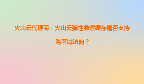 2025-09-19火山云代理商:火山云彈性急速緩存是否支持跨區(qū)域訪問? 一、火山云彈性急速緩存的核心優(yōu)勢 火山引擎作為字節(jié)跳動旗下的云計算服務(wù)品牌,其彈性急速緩存服務(wù)(R...