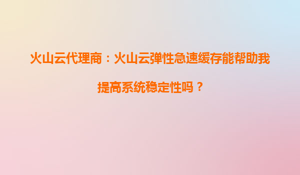 2025-09-20火山云彈性急速緩存如何提升系統(tǒng)穩(wěn)定性?代理商詳解核心優(yōu)勢 一、理解標(biāo)題關(guān)鍵詞:系統(tǒng)穩(wěn)定性與火山云解決方案的關(guān)系 標(biāo)題"火山云彈性急速緩存能幫助我提高系統(tǒng)穩(wěn)定性嗎?"聚焦三個關(guān)鍵點:首先是技術(shù)產(chǎn)品——...