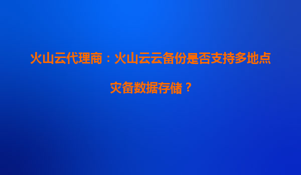 4008-020-360 火山云代理商:火山云云備份是否支持多地點(diǎn)災(zāi)備數(shù)據(jù)存儲(chǔ)? 引言:數(shù)據(jù)災(zāi)備的核心需求與挑戰(zhàn) 在數(shù)字化轉(zhuǎn)型加速的今天,企業(yè)數(shù)據(jù)的可靠性與業(yè)務(wù)連續(xù)性成為關(guān)鍵訴求。多地點(diǎn)災(zāi)備(Multi-SiteDisasterRecovery)通過...