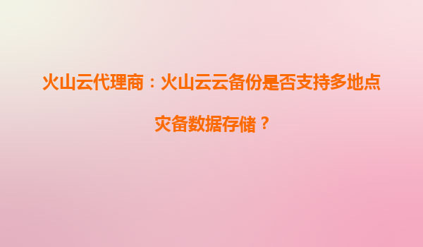 4008-020-360 火山云代理商:火山云云備份是否支持多地點(diǎn)災(zāi)備數(shù)據(jù)存儲(chǔ)? 引言:數(shù)據(jù)災(zāi)備的核心需求與挑戰(zhàn) 在數(shù)字化轉(zhuǎn)型加速的今天,企業(yè)數(shù)據(jù)的可靠性與業(yè)務(wù)連續(xù)性成為關(guān)鍵訴求。多地點(diǎn)災(zāi)備(Multi-SiteDisasterRecovery)通過(guò)...