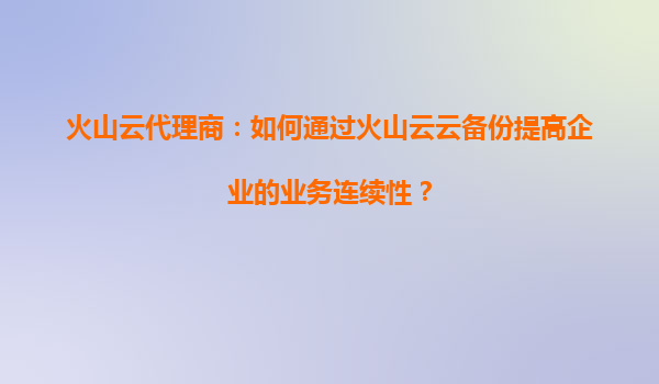 2025-09-16火山云代理商解析:火山云云備份如何降低您的數(shù)據(jù)丟失風險? 一、數(shù)據(jù)安全危機:企業(yè)為何需要云備份? 在數(shù)字化時代,數(shù)據(jù)已成為企業(yè)的核心資產(chǎn)。硬件故障、人為誤操作、網(wǎng)絡攻擊或自然災害都可能導致...