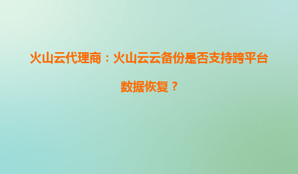 2025-09-16火山云代理商:火山云云備份是否支持跨平臺數(shù)據(jù)恢復? 引言:數(shù)字化轉型下的數(shù)據(jù)備份需求 在數(shù)字化時代,數(shù)據(jù)已成為企業(yè)最核心的資產(chǎn)之一。無論是文檔、數(shù)據(jù)庫還是應用程序,數(shù)據(jù)的丟失都可能對企業(yè)運...