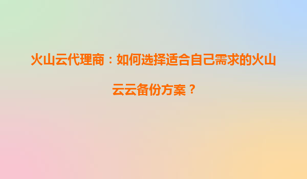 2025-09-16火山云代理商:如何選擇適合自己需求的火山云云備份方案? 一、企業(yè)數(shù)據(jù)備份的核心需求 在數(shù)字化轉型的大背景下,企業(yè)數(shù)據(jù)已成為核心資產(chǎn)。選擇云備份方案時需重點關注: 數(shù)據(jù)安全...