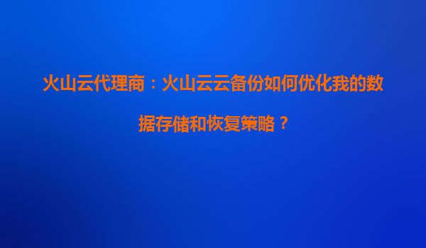 2025-09-16火山云代理商:火山云云備份如何優(yōu)化我的數(shù)據(jù)存儲和恢復策略? 引言:數(shù)據(jù)存儲與恢復的挑戰(zhàn) 在數(shù)字化時代,企業(yè)數(shù)據(jù)呈爆炸式增長,如何高效存儲和快速恢復數(shù)據(jù)成為關鍵挑戰(zhàn)。傳統(tǒng)本地備份方案...