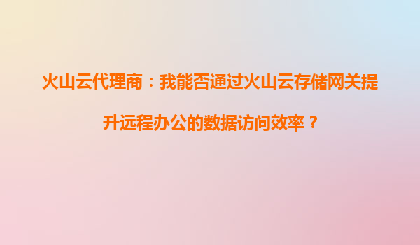 2025-09-16火山云代理商:通過火山云存儲(chǔ)網(wǎng)關(guān)提升遠(yuǎn)程辦公數(shù)據(jù)訪問效率的可行性分析 一、遠(yuǎn)程辦公的數(shù)據(jù)訪問挑戰(zhàn)與需求 隨著遠(yuǎn)程辦公成為新常態(tài),企業(yè)面臨數(shù)據(jù)訪問延遲、協(xié)作效率低和安全性不足的三大痛點(diǎn): ...