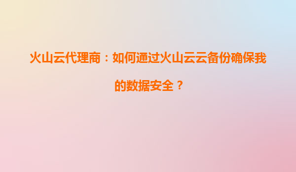 2025-09-16火山云代理商指南:如何通過火山云云備份確保數(shù)據(jù)安全 在數(shù)字化時(shí)代,數(shù)據(jù)已成為企業(yè)最寶貴的資產(chǎn)之一。如何確保數(shù)據(jù)安全、避免丟失成為每個(gè)企業(yè)必須面對(duì)的課題。作為火山云代理商,我們有幸見證了大量企業(yè)通過火...