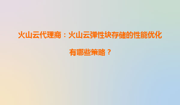2025-09-16火山云代理商:火山云彈性塊存儲的性能優(yōu)化策略與優(yōu)勢解析 一、火山云彈性塊存儲的核心價值 作為火山引擎(VolcanoEngine)的核心產(chǎn)品之一,火山云彈性塊存儲(EBS)為云服務(wù)器提供高性能、...