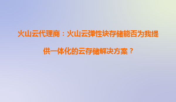 2025-09-16火山云代理商:火山云彈性塊存儲的性能如何與其他存儲方案相比? 一、火山云彈性塊存儲的核心優(yōu)勢 火山引擎提供的彈性塊存儲(EBS)是一種高性能、低延遲的云存儲服務(wù),專為云上虛擬機(jī)和容器場景設(shè)計(jì)...