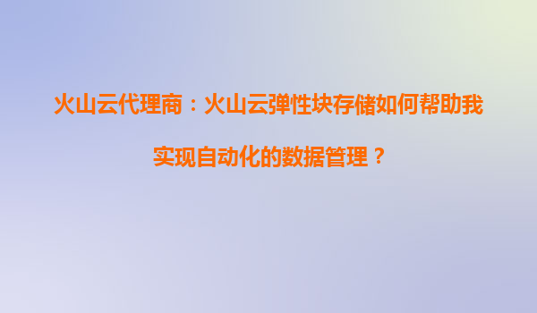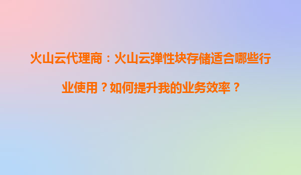 2025-09-04火山云代理商:火山云彈性塊存儲適合哪些行業(yè)使用?如何提升我的業(yè)務(wù)效率? 一、火山云彈性塊存儲的核心優(yōu)勢 作為字節(jié)跳動旗下的云計算服務(wù)品牌,火山引擎推出的彈性塊存儲(EBS)憑借高...