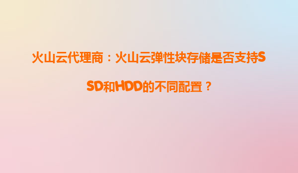 4008-020-360 火山云代理商:火山云彈性塊存儲是否支持SSD和HDD的不同配置? 火山云彈性塊存儲的多配置支持 在當(dāng)今數(shù)據(jù)驅(qū)動的商業(yè)環(huán)境中,存儲解決方案的靈活性和性能至關(guān)重要。作為火山引擎(Volcano...