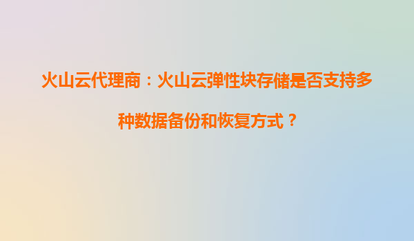 2025-09-04火山云代理商:火山云彈性塊存儲是否支持多種數(shù)據(jù)備份和恢復(fù)方式? 一、火山云彈性塊存儲概述 火山引擎作為字節(jié)跳動旗下的云計算品牌,其彈性塊存儲(EBS)服務(wù)憑借高性能、高可靠性和靈活的擴展...