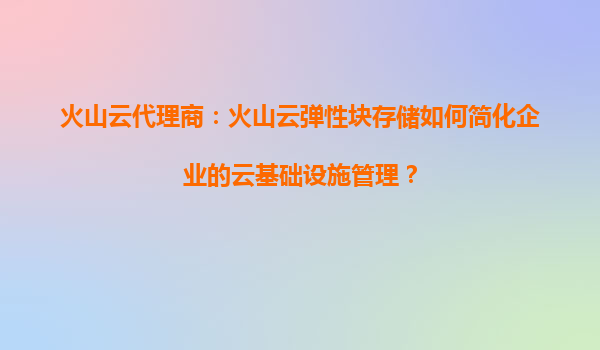 2025-09-04火山云代理商:火山云彈性塊存儲如何簡化企業(yè)的云基礎(chǔ)設(shè)施管理? 一、引言:企業(yè)云基礎(chǔ)設(shè)施管理的核心挑戰(zhàn) 在數(shù)字化轉(zhuǎn)型的浪潮中,企業(yè)的云基礎(chǔ)設(shè)施管理面臨著前所未有的復(fù)...
