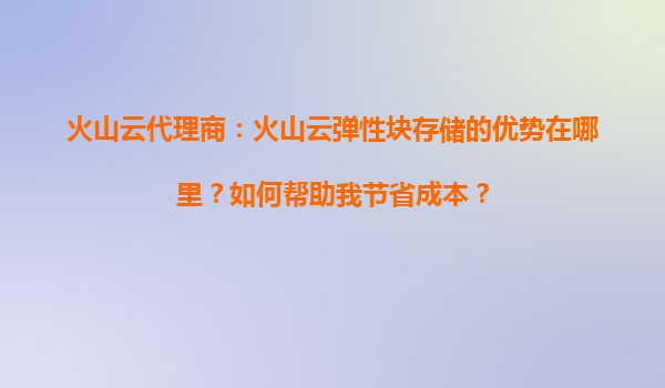 2025-09-04火山云代理商:火山云彈性塊存儲的優(yōu)勢在哪里?如何幫助我節(jié)省成本? 一、火山云彈性塊存儲的核心優(yōu)勢 火山引擎提供的彈性塊存儲(EBS)服務(wù),是專為云服務(wù)器設(shè)...
