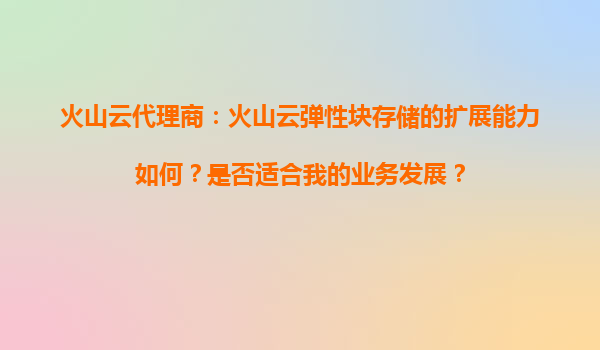 2025-09-04火山云代理商:火山云彈性塊存儲的擴(kuò)展能力如何? 在數(shù)字化轉(zhuǎn)型的浪潮中,企業(yè)對云存儲的需求日益增長,尤其是對靈活、可擴(kuò)展的存儲解決方案需求迫切。火山引擎作為字節(jié)跳動旗下的云計(jì)算服務(wù)品牌,其火山云彈性...