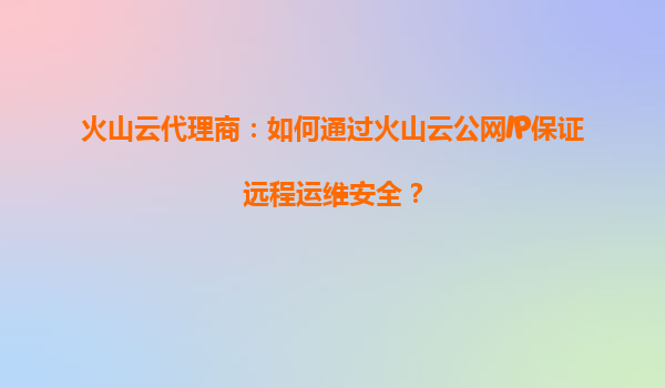 2025-08-30火山云代理商:如何通過火山云公網(wǎng)IP保證遠程運維安全? 一、火山引擎公網(wǎng)IP的核心優(yōu)勢 火山引擎提供的公網(wǎng)IP服務具備以下核心能力,為遠程運維安全奠定基礎: 全球覆蓋的高質量網(wǎng)絡:依托字節(jié)跳動全...