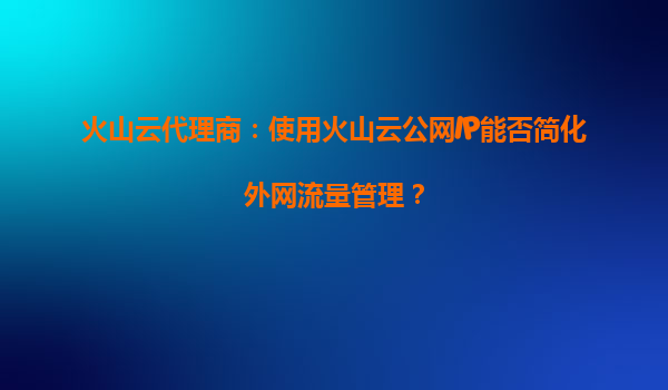 2025-08-30火山云代理商:使用火山云公網(wǎng)IP如何簡化外網(wǎng)流量管理? 一、外網(wǎng)流量管理的挑戰(zhàn) 在數(shù)字化轉型的浪潮中,企業(yè)對外網(wǎng)流量的依賴日益加深,但隨之而來的管理難題...