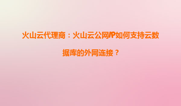 2025-08-30火山云代理商:火山云公網(wǎng)IP如何支持云數(shù)據(jù)庫的外網(wǎng)連接? 一、火山云公網(wǎng)IP的核心價值 火山引擎提供的公網(wǎng)IP服務是企業(yè)實現(xiàn)云資源外網(wǎng)訪問的關鍵組件。通過彈性公網(wǎng)IP(EIP),用戶可以...