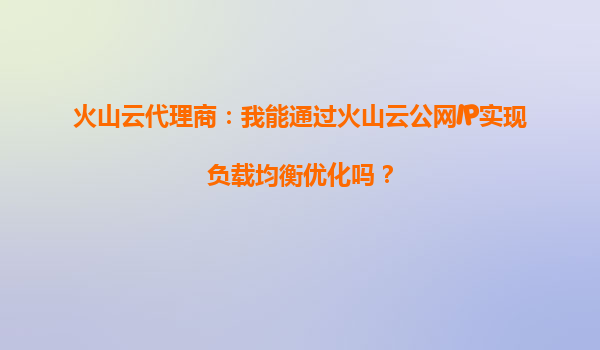 2025-08-30火山云代理商:我能通過火山云公網(wǎng)IP實現(xiàn)負載均衡優(yōu)化嗎? 一、火山云公網(wǎng)IP與負載均衡的核心能力 作為火山引擎(VolcanoEngine)的代理商,客戶常問:"能否通過火山云公網(wǎng)IP實現(xiàn)負載均...