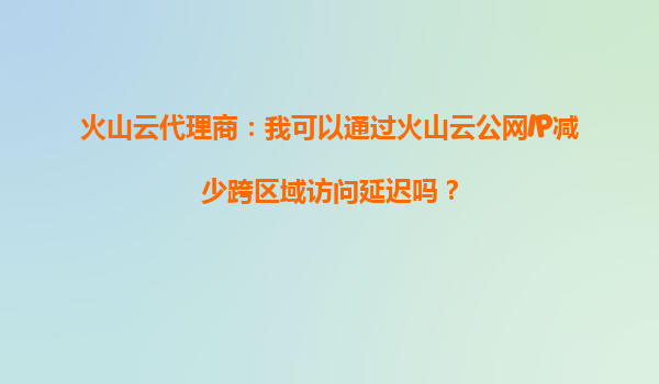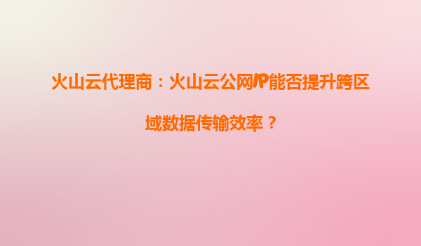 2025-08-29火山云代理商:火山云公網(wǎng)IP能否提升跨區(qū)域數(shù)據(jù)傳輸效率? 一、火山云公網(wǎng)IP的核心價值 火山引擎提供的公網(wǎng)IP服務是云計算基礎設施的重要組成部分,其核心價值在于為企業(yè)和開發(fā)者提供穩(wěn)定、高效且...