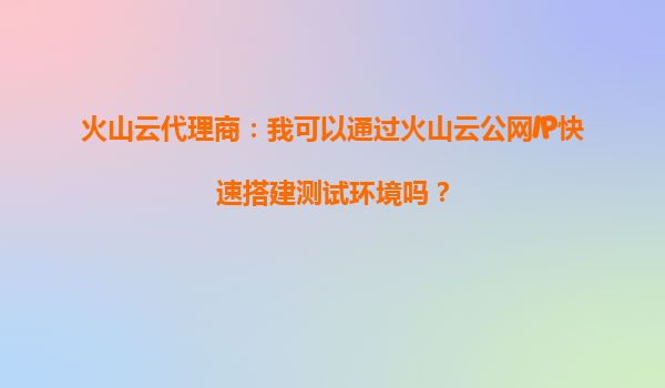 2025-08-30火山云代理商指南:如何通過公網(wǎng)IP快速搭建測試環(huán)境? 一、火山云公網(wǎng)IP的核心優(yōu)勢 火山引擎提供的公網(wǎng)IP服務具備以下核心能力,可顯著提升測試環(huán)境搭建效率: 秒級分配:通過控制臺...