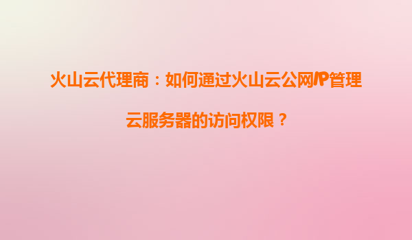2025-08-29火山云代理商指南:如何通過火山云公網(wǎng)IP管理云服務器訪問權(quán)限 一、火山云公網(wǎng)IP的核心價值 火山引擎(VolEngine)作為字節(jié)跳動旗下的云計算服務平臺,其公網(wǎng)IP...