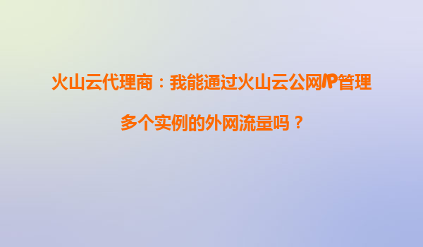 2025-08-29火山云代理商:通過火山云公網(wǎng)IP高效管理多實例外網(wǎng)流量 一、火山云公網(wǎng)IP的核心能力 作為火山引擎(VolcanoEngine)的重要網(wǎng)絡組件,公網(wǎng)IP服務為企業(yè)提供了靈活的外網(wǎng)流量管理方案。通過綁定公網(wǎng)IP,用...