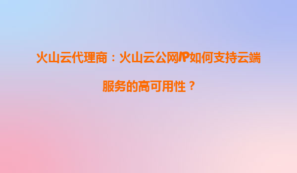 4008-020-360 火山云代理商:火山云公網(wǎng)IP如何支持云端服務的高可用性? 一、高可用性的核心需求與挑戰(zhàn) 在數(shù)字化時代,企業(yè)云端服務的連續(xù)性和穩(wěn)定性直接影響業(yè)務運營。高可...