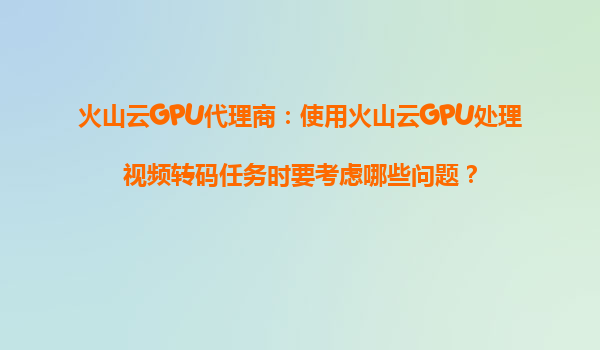 2025-08-26火山云GPU代理商:使用火山云GPU處理視頻轉碼任務的關鍵考量 隨著視頻內容的爆炸式增長,高效、穩(wěn)定的視頻轉碼服務成為企業(yè)剛需。火山云GPU憑借其強大的計算能力和彈性擴展特性,成為視頻處理領域的理想選擇。...
