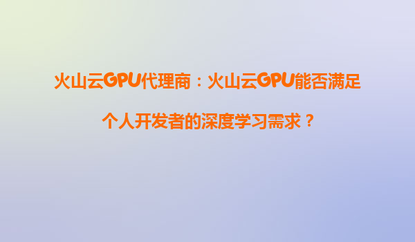 4008-020-360 火山云GPU代理商:用戶如何平衡火山云GPU的性能和使用成本? 引言 在人工智能、深度學習、科學計算等領域,GPU算力已成為不可或缺的資源。然而,高性能GPU的使...