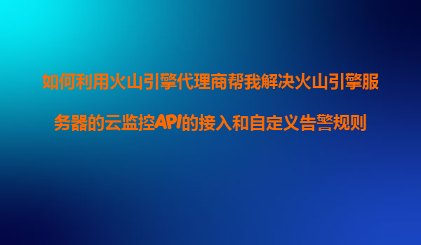2025-11-08如何利用火山引擎代理商解決火山引擎云監(jiān)控API接入與自定義告警規(guī)則設(shè)置 一、火山引擎云服務(wù)的核心優(yōu)勢(shì) 火山引擎作為字節(jié)跳動(dòng)旗下的云計(jì)算服務(wù)平臺(tái),在云監(jiān)控領(lǐng)域具備三大核心優(yōu)勢(shì): 高性能數(shù)據(jù)處理能力:支持每...