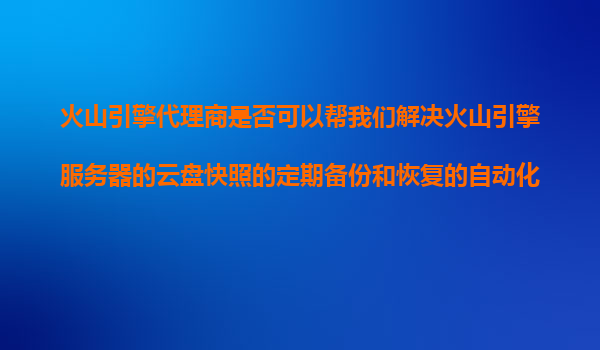 2025-11-08火山引擎代理商如何幫您解決云盤(pán)快照的自動(dòng)化備份與恢復(fù)難題 一、火山引擎云盤(pán)快照的核心優(yōu)勢(shì) 火山引擎作為字節(jié)跳動(dòng)旗下的云計(jì)算品牌,其云服務(wù)器(ECS)和云盤(pán)快照功能具備以下技術(shù)優(yōu)勢(shì): ...