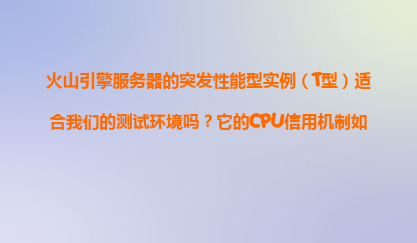 2025-11-08火山引擎突發(fā)性能型實(shí)例(T型)在測(cè)試環(huán)境中的適用性及CPU信用機(jī)制解析 一、突發(fā)性能型實(shí)例(T型)簡(jiǎn)介 突發(fā)性能型實(shí)例(T型)是火山引擎(VolcanoEngine)推出的一種經(jīng)濟(jì)高效的云服務(wù)器類(lèi)型,特別適合對(duì)...